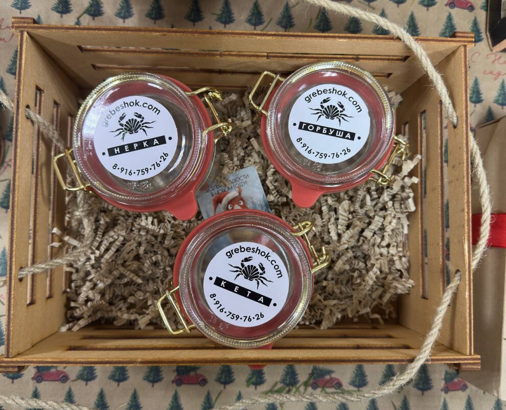 Ассорти икры 3 по 250 г (стекло буг. замок, подарочный ящик)