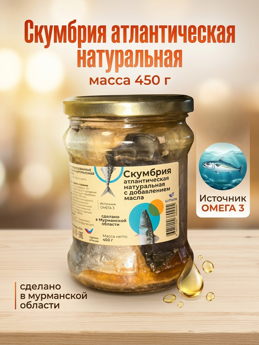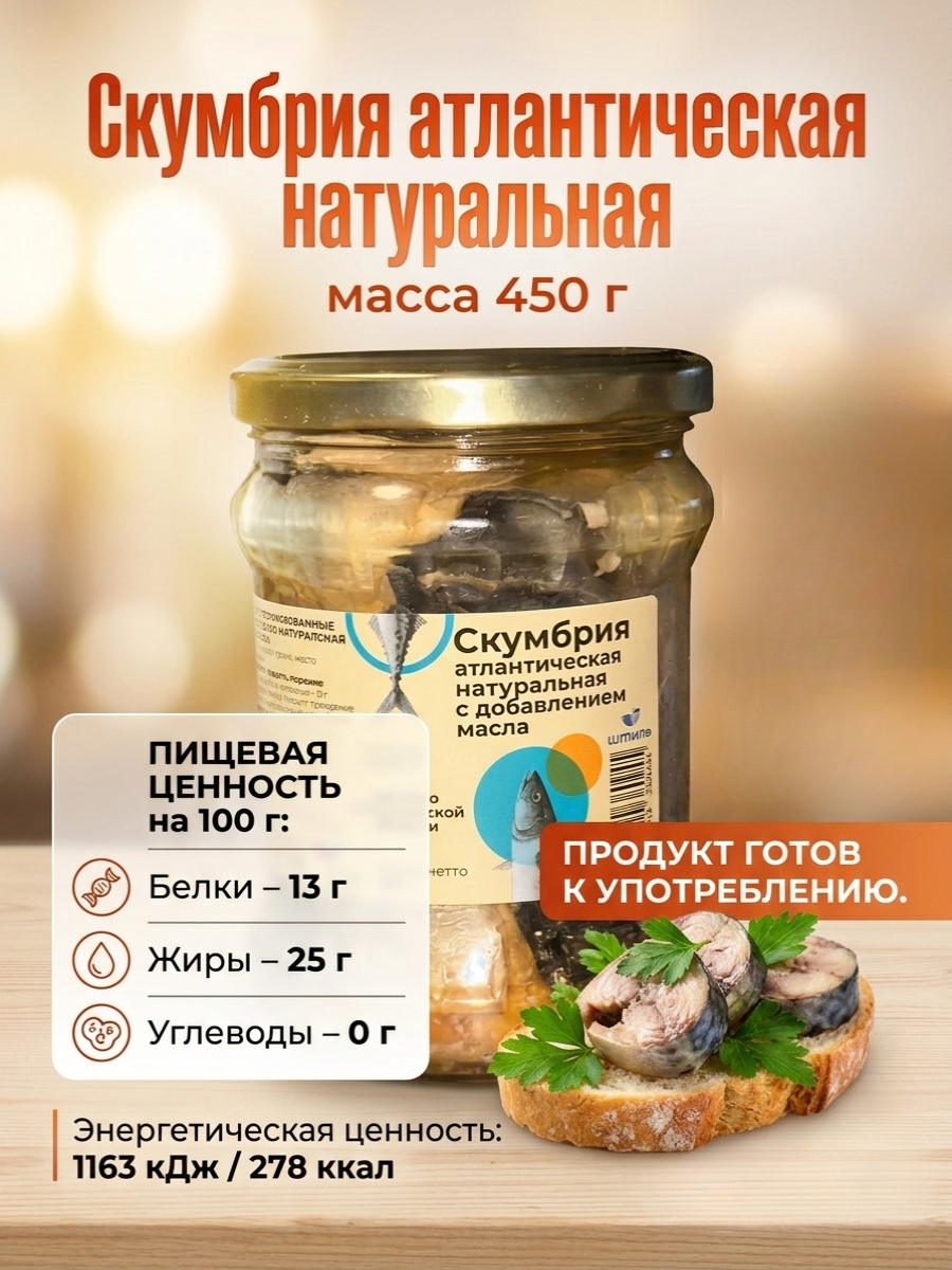 Скумбрия атлантическая — это вкусные рыбные консервы, богатые минеральными веществами. Для приготовления берутся цельные куски свежей рыбы, высококачественное масло и специи.